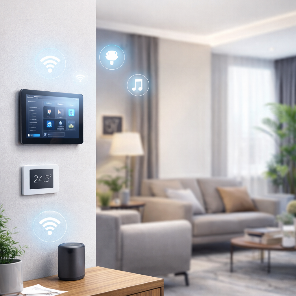 Unsere Lösungen machen Ihr Zuhause zu einem komfortablen und modernen Rückzugsort. Durch automatisierte Abläufe, intelligente Beleuchtung und eine einfache Steuerung genießen Sie mehr Bequemlichkeit im Alltag – ganz nach Ihren Wünschen.